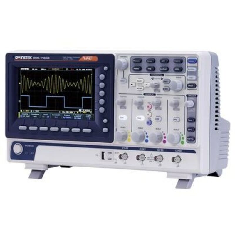 Dettagli tecnici Ampiezza di banda 50 MHz Calibrato di fabbrica senza certificato Dimensione del prodotto, larghezza 380 mm Dimensione del prodotto, lunghezza 127.3 mm Dimensioni (L x L x A) 127.3 x 380 x 208 mm Dimensioni prodotto Altezza 208 mm Interfacce (componenti) USB, Ethernet Numero max. Ingressi analogici 4 Peso 2.8 kg Risoluzione (metrologia) 8 Bit Tipo prodotto Oscilloscopio digitale Oscilloscopio a memoria digitale GDS-1054B La serie GDS-1000B dispone di tre Bandbreitenselektionen - 100 MHz, 70 MHz, 50 MHz ed è dotato di morsetti d'ingresso del segnale analogico con quattro o due canali (50 MHz solo con 4 canali). La velocità di campionamento massima per ogni singolo canale è pari a 1 GSa/s e la capacità di memoria è pari a 10 M punti per canale indipendentemente l'uno dall'altro. La frequenza di aggiornamento della forma d'onda è pari a 50.000 Wfms/s che consente all'utente la forma d'onda dettagliata deviazione un. Inoltre, offrono il 7 WVGA-display LCD a colori e 256 a