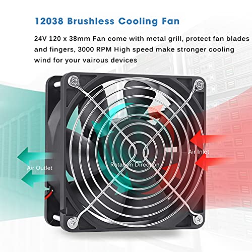GDSTIME Ventola da 120 mm 120 x 38 mm Ventola per computer 24 V Ventola 12038 PC Ventilatore da 12 cm DC Brushless Ventola di raffreddamento 125.1 CFM Big Air Flow Case Fan Cooler Per TV Box Console di gioco Router Xbox