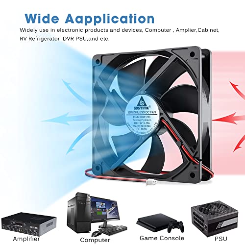 GDSTIME Ventola da 120 mm, 120 x 25 mm, ventola per computer, ventola da 12 V, ventola per PC, ventola assiale da 1800 giri/min, ventola di raffreddamento DC Brushless per PSU Chassis Cabinet