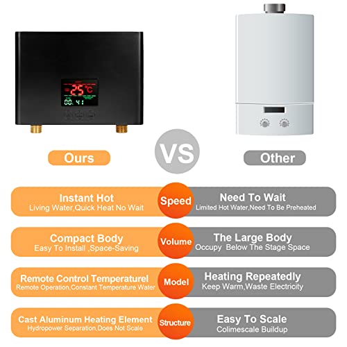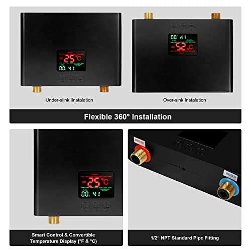✅【Compatto e punto di utilizzo】 È sorpreso che questo scaldabagno elettrico possa essere installato a 360 ° (indipendentemente da montato in orizzontale, verticalmente e obliquamente). Dimensioni: 21 cm*5,5 cm*12 cm, 220volt. Garanzia di un anno e assistenza al servizio clienti 24H, non esitate a contattarci.