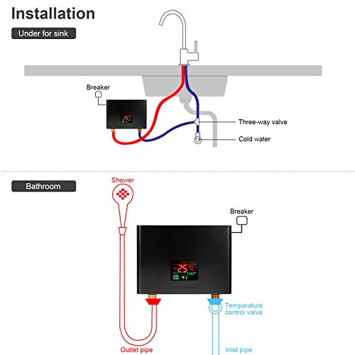 ✅【Facile da usare】 Lo scaldabagno senza serbatoio elettrico viene fornito con il display digitale e il pannello di controllo touch per l'impostazione visiva. Gli accessori sono completi per l'installazione rapida senza spese aggiuntive o per la preparazione del tempo degli accessori.