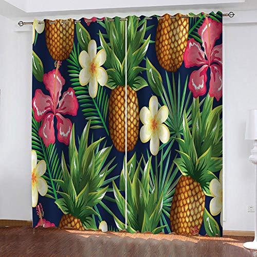 GDYRBY Tenda Oscurante Camera da Letto Bambini 2 Pannelli 3D Digitale Stampa Ananas Vegetale Tropicale Tende Soggiorno Moderne Eleganti con Occhielli, Decorazione di Finestre Interne 260X220cm