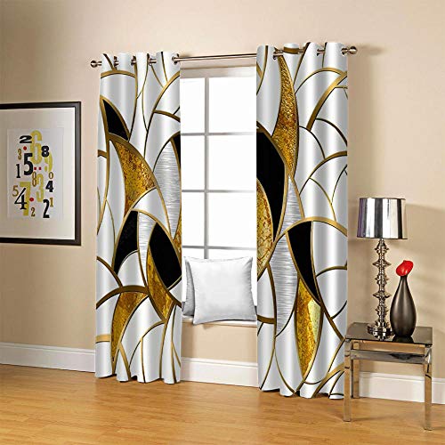 GDYRBY Tende Oscuranti Camera da Letto 2 Pannelli - Motivo Stampati in Motivo A Stampa Geometrica Oro 3D Tende Oscuranti Termica Isolante con Anelli per Decorazione di Finestre Interne 200X160cm