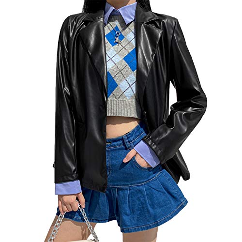Caratteristiche: Blazer a maniche lunghe in Pu, stile classico ed elegante, adatto per taglia S, M, L, colore nero, il pacchetto include 1*blazer.