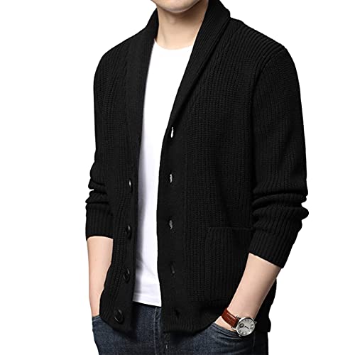 Geagodelia Cardigan da Uomo in Maglia, Maglione a Maniche Lunghe con Bottoni a Tinta Unita Casual Caldo Invernonero,XXL