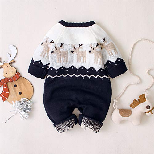 Geagodelia Carino Maglioni Natale Cappotto da Neonati Unisex Manica Lunga Pagliaccetti Lavorati a Maglia Tuta Renna Abiti Complessivi 0-18 Mesi da Bambini