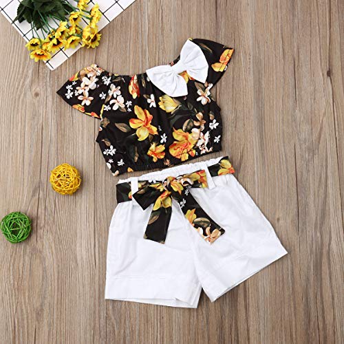 Geagodelia Completi da Bambina T-Shirt con Volant Floreali Bowknot Top + Pantaloncini Set di Vestiti Estivi 1-5 Anni (Nero, 80)