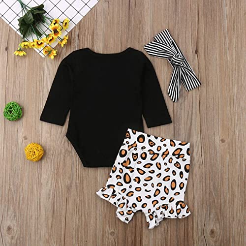Geagodelia Completini Neonata 3-24 Mesi 2 Pezzi Pagliaccetto con Bottoni + Pantaloncini Stampa Leopardato Maniche Corte Primavera Tutine in Cotone Elegante (Nero&Leopardo, 6-12 Mesi)