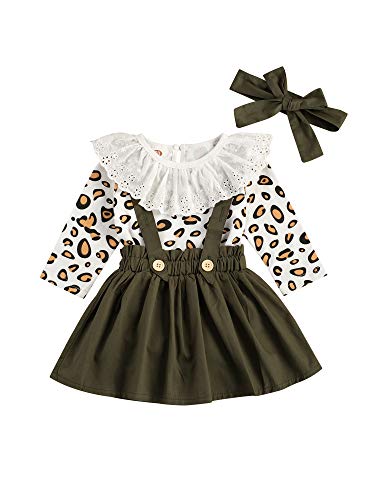 Geagodelia Completini Neonata 3 Pezzi Pagliaccetto a Maniche Lunghe + Gonna con Bretelle+ Fascia Tutine Leopatdata Bimba Set di Vestito Invernale (Verde, 9-15 Mesi)