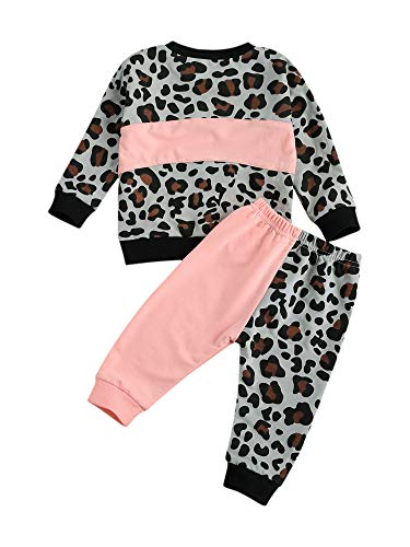 Geagodelia Completo Ginnastica Bambina 2PC Felpa a Maniche Lunghe + Pantaloni Leopardo Tuta Femminile 0-4 Anni Autunnale e Invernale Casual (Leopardo, 18-24 Mesi)
