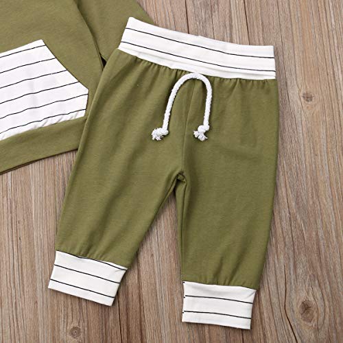 Geagodelia Completo 2 PC per Neonato 0-24 Mesi Felpa a Maniche Lunghe con Cappuccio + Pantaloni Top a Righe in Cotone Autunnale e Invernale (Verde, 0-6 Mesi)