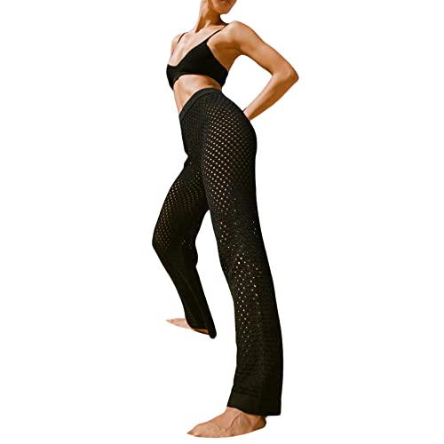 Geagodelia Copricostume Donna Mare Copribikini Lavorato a Maglia Traforato Mezza Manica in Tinta Unita Cardigan Abito da Spiaggia Lungo Beachwear S-L (Nero, S)