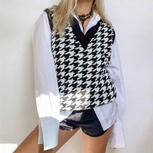 Geagodelia Maglione Senza Maniche Donna Gilet Lavorato a Maglia Houndstooth Scozzese Autunnale e Invernale Scollo a V Maglione Smanicato Elegante (Nero B, M)