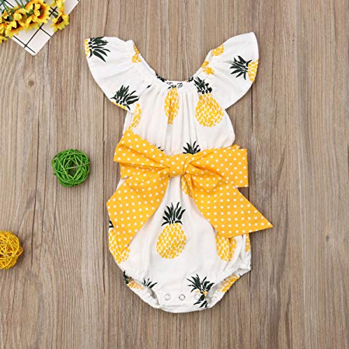 Geagodelia Pagliacceto Neonata Estivo Bimba Body Bianco e Giallo Senza Manica con Stampaad Ananas e Fiocco Giallo