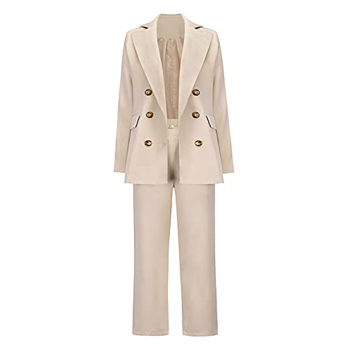 Geagodelia 2 Pezzi Completi da Donna Elegante Blazer Doppiopetto Colletto Sartoriale + Pantaloni a Gamba Dritta Completo Autunnale Primaverile Casual da Lavoro per Ufficio (Albicocca, XL)