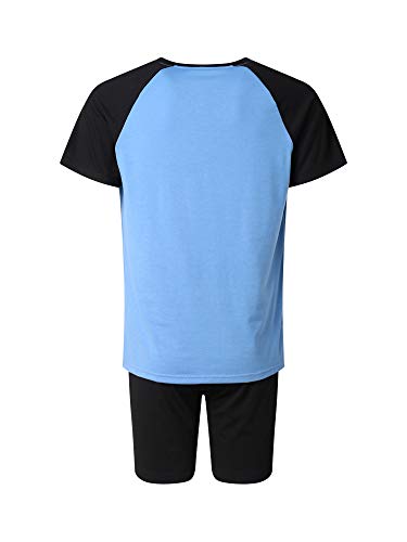 Geagodelia Pigiama Uomo 2 Pezzi Manica Corta Pigiama Estivo Casual Maglietta + Pantaloncini Set Pigiama Uomo Ragazzo in Cotone Abbigliamento per Casa Regalo (Blu, 3X-Large)