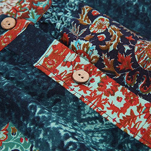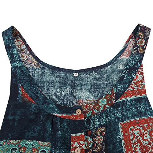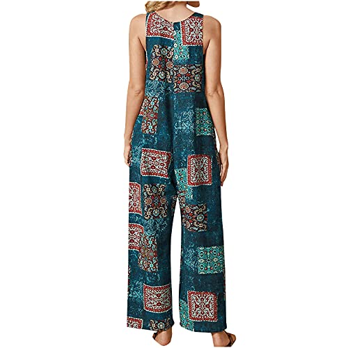 Geagodelia Salopette da Donna Senza Maniche con Tasche Stampa Floreale Vintage Stile Allentato per Primavera Estate Autunno Jumpsuit Tuta Casual alla Moda (Verde, M)
