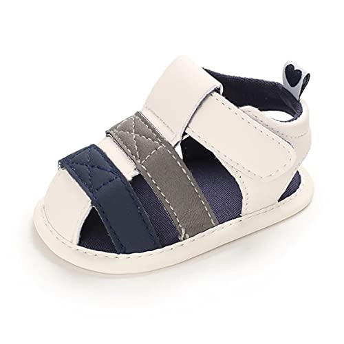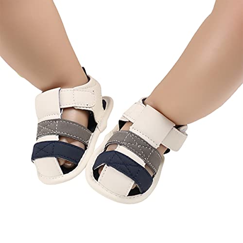 Geagodelia Scarpe Neonata Sandali Neonati Estivi Scarpe Primi Passi in Pelle con Suola Morbida Antiscivolo Sandali Unisex per Bambini Scarpe Romane Elegante (blu+bianco, 6-12 mesi)