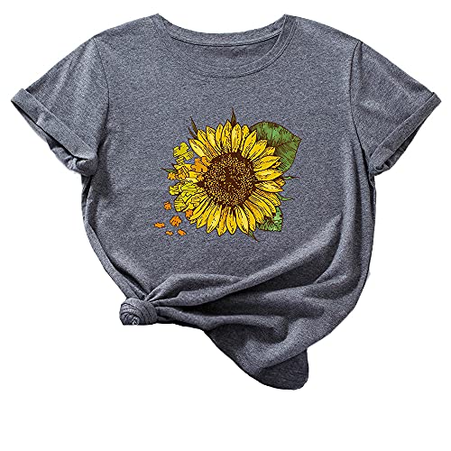Geagodelia T-Shirt Donna Casual Maglietta Elegante Estiva Stampa a Motivo Girasole Top Estate Maniche Corte Taglie Forte Classico S-5XL Comodo Ragazza Regalo (Grigio02, 5X-Large)