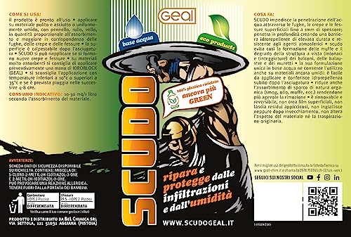 GEAL SCUDO. Idrorepellente Anti Infiltrazioni Base Acqua. Elimina Infiltrazioni per Terrazze, Pavimenti e Rivestimenti. 1 Litro rivestimenti. 1 Litro