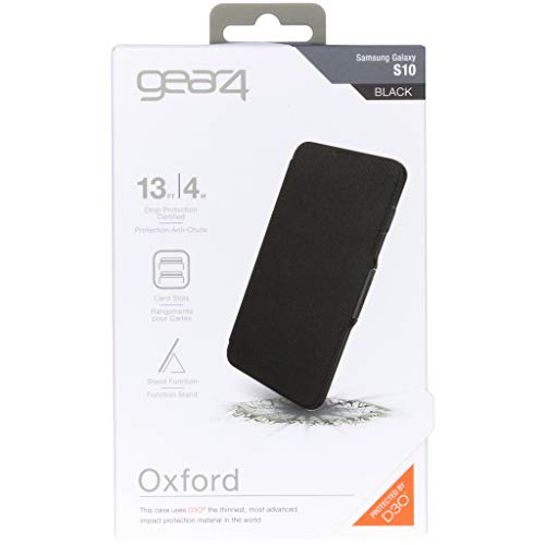 GEAR4 Oxford Folio progettato per Samsung Galaxy S10, protezione avanzata dagli urti di D3O, custodia a libro - nero