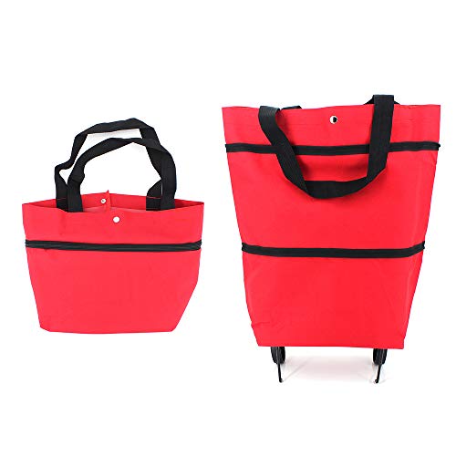 Gearific Trolley Pieghevoli Borsa della Spesa Borsa della Spesa Pieghevole in Tessuto Oxford con Ruote Carrello della Spesa per supermercato Domestico (Rosso)
