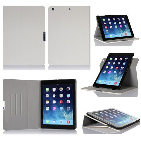 GearIT Apple iPad Air case - 360 spinner folio rotating smart cover stand for iPad Air - twill cream white