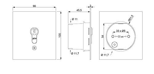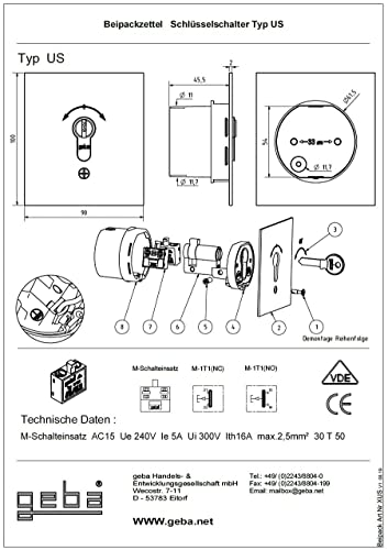 Geba US 1-2T/1 Interruttore a chiave da incasso a incasso DIN a mezzo cilindro 2 tasti 3 chiavi pannello frontale in alluminio IP54 azionamento per porta del garage portiera motore