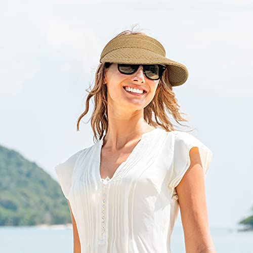 Materiale: La visiera in paglia da donna è realizzata in pura erba, è leggera e traspirante e non facile da lavare