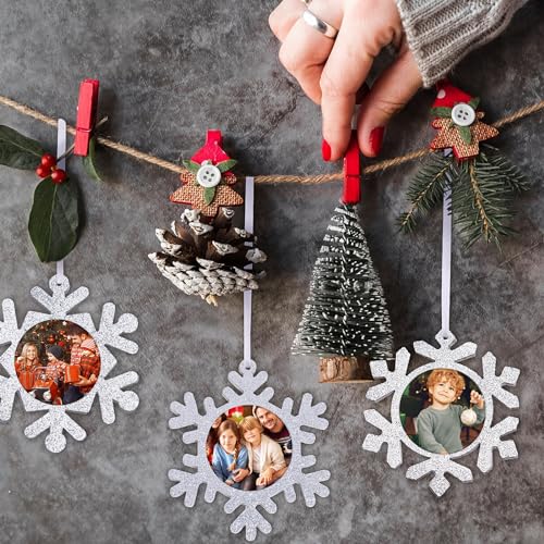GEBETTER 12pz Cornici Portafoto Natale in Feltro con Glitter, Fiocco di Neve con Foto, Porta Foto Decorazione Addobbi Albero di Natale Casa
