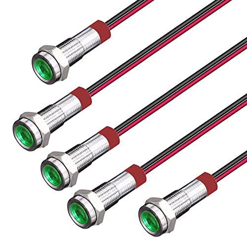 Gebildet 5pcs 6mm LED Indicatore Luminoso in Metallo 3V-4.5V-5V-6V-7.5V-9V Lampada di Segnalazione Impermeabile con Filo,Verde