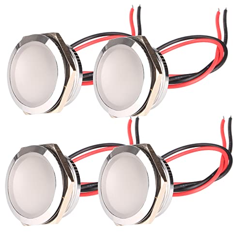 Gebildet 4 Pezzi 12V-24V 20mA Indicatore di Risparmio Energetico Indicatore Luminoso in Metallo Lampada di Segnalazione Impermeabile Dimensione del Foro 22mm LED Bianco (Testa Sferica)