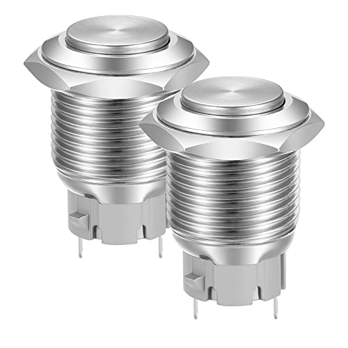 Gebildet 16 mm Testa Alta ACCESO/SPENTO SPST Pulsante a Scatto, Interruttore a Pulsante in Metallo Impermeabile in Acciaio Inossidabile, Terminali a Saldare DC 6V/12V/36V/48V, AC 110V/230V 3A 1NO