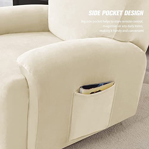 GEBIN Elastico Vellutata 3 Posti Reclinabile Coperture, Fodere per Sedie Reclinabili in Pelle E Tessuto, Antiscivolo con Tasca Laterale Coprisedile Chivas Poltrona (Beige)