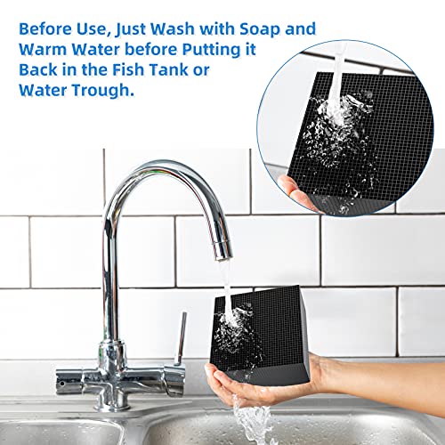Facile da usare: lavare il filtro dell'acqua con acqua calda e sapone prima dell'uso. Il posizionamento consigliato si trova vicino all'ingresso dell'acqua della pompa dell'acquario.