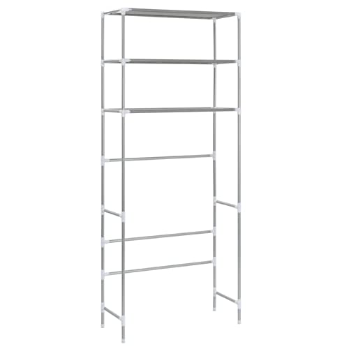 Gecheer Scaffale per Bagno con 3 Ripiani, Scaffale per Lavatrice con Ripiani, Scaffale Salvaspazio, Mobile Bagno Salvaspazio, Mobile Sopra Lavatrice/Mobile Sopra Toilette Argento 69x28x169 cm