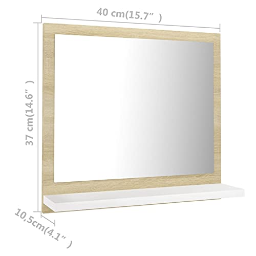 Gecheer Specchio da Bagno Moderno Bianco e Rovere,Specchio con Mensola Specchio Rettangolare,Specchio da Bagno a Parete,Specchio a Muro da Bagno,Specchio da Parete con Cornice 40x10,5x37 cm Truciolato