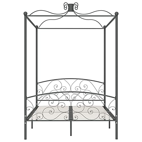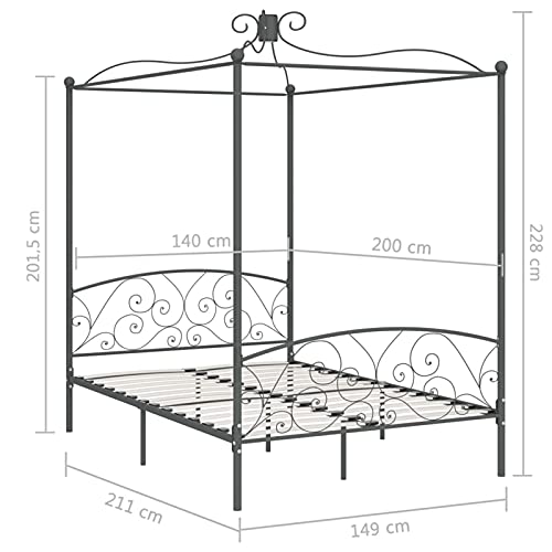 Gecheer Struttura Letto Singolo a Baldacchino in Metallo Grigio con Doghe 140x200 cm,Giroletto Singolo con Baldacchino in Metallo con Doghe,Letto in Metallo,Struttura Letto con Tetto,Letto con Doghe