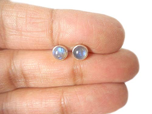 Fiery - Orecchini a perno rotondi con labradorite, 5 mm