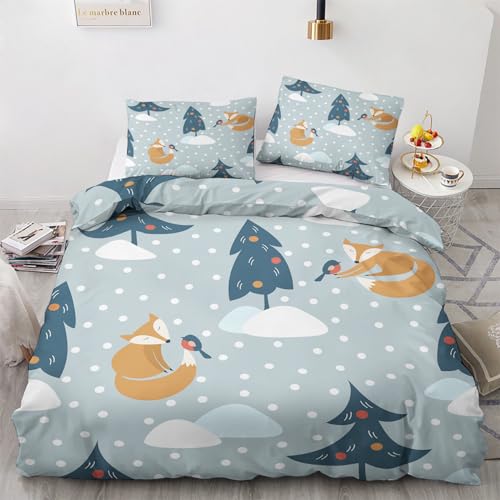 GEDAEUBA Parure Copripiumino Matrimoniale 240x220 Animali del Bosco Bambini, Copri Piumino e Federe 50x80, Set di Biancheria da Letto Volpe e Uccelli in Microfibra Morbido, con Cerniera