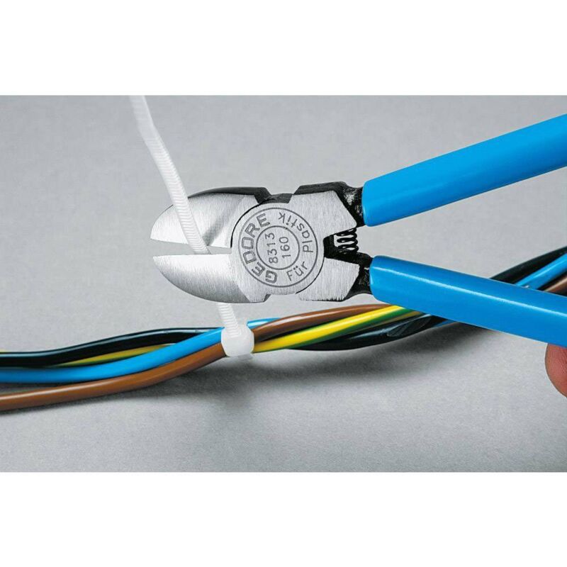 Di colore nero, superfici di taglio rettificate in piano, ad apertura automatica mediante molla a pressione, Impugnature con rivestimento protettivo blu (TL), nera, testa rettificata con impugnature antiscivolo con rivestimento protettivo blu, Solo per plastica