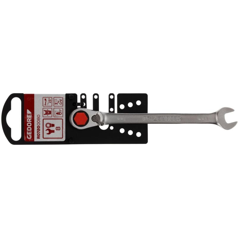 Testa a cricchetto inclinata di 15°, movimento a destra/sinistra selezionabile, Bocca inclinata di 15°, Superficie con cromatura opaca, Acciaio cromo-vanadio, Superficie cromata satinata opaca, Acciaio cromo-vanadio Larghezza testa 1 [mm] 18,5 mm Larghezza totale [mm] 19 mm Peso netto [kg] 0,042 kg Numero di denti 72 Certificato VDE 0 Angolo di rotazione del ritorno 5 ° Dimensioni dell'imballaggio 1 Posizione della ganascia 15 ° Contenuto (numero di pezzi) 1 tlg. Materiale (F) Chrom-Vanadium-Stahl Larghezza tra le piastre 1 [mm] 8 Larghezza testa 2 [mm] 17,7 mm Altezza testa 2 [mm] 7,7 mm Standard ähnlich DIN 3113 - Form A ISO 3318 Altezza totale [mm] 13 mm Paese di origine Taiwan Lunghezza totale 136 mm Altezza testa 1 [mm] 5,1 mm Registrazione REACH disponibile 0