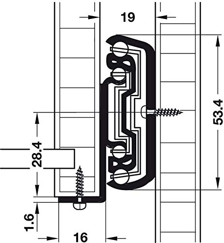 Elevata portata: estraibile fino a 60 kg - Binario di scorrimento a gabbia sferica per avvitare al cassetto con 2 angoli - Materiale: acciaio massiccio - Superficie: metallo zincato chiaro