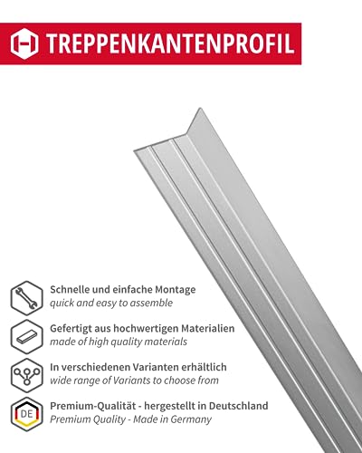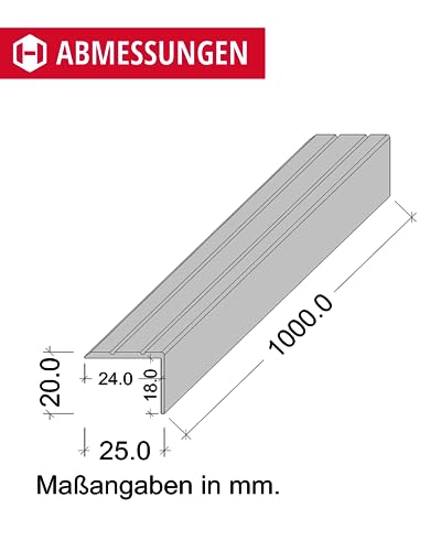 1 metro - profili perimetrali in alluminio anodizzato e antiruggine - profilo angolare 20 x 18 mm per una finitura della scala di alta qualità sui gradini - facile installazione per l'incollaggio del pavimento