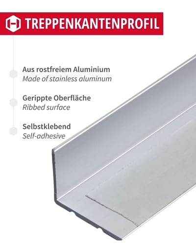Gedotec Adesivo per gradini in alluminio argento con profilo scale | 1000 mm | Protezione angolare non perforata l'incollaggio profili pavimenti 20 x 18 mm | angolo alluminio scanalature - 1 pezzo