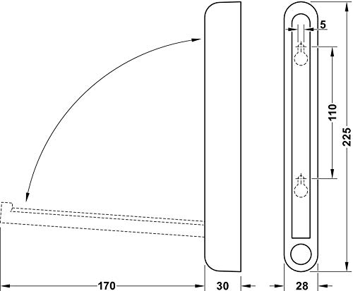 Appendiabiti con profondità: 30 mm, altezza: 225 mm, sporgenza: 170 mm, larghezza: 28 mm, distanza tra i fori: 110 mm