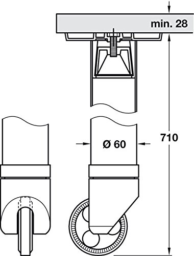 Gedotec Gamba per mobili con rulli argento RAL 9006 gamba per tavolo regolabile in altezza +25 mm gamba per tavolo rotonda in metallo - H1877 | Altezza: 710 mm | 1 pezzo
