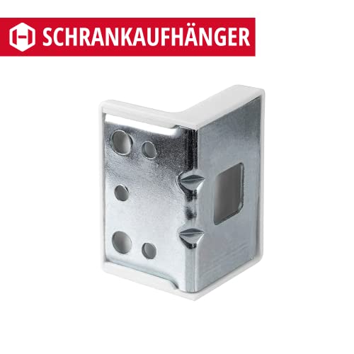Gedotec, gancio per armadio regolabile da avvitare | tappo di copertura bianco | acciaio zincato | portata 150 kg | Set da 2 pezzi - fissaggio per pensili e montaggio a parete