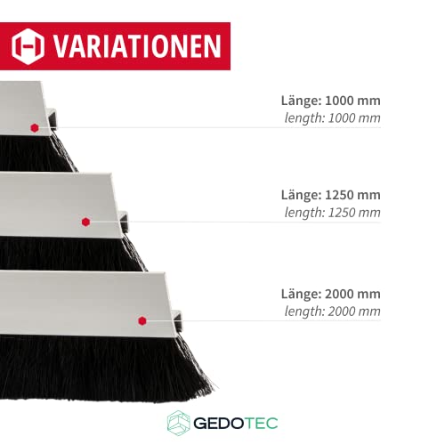 Gedotec, guarnizione a spazzola per porte, con rinforzo spesso, lunghezza: 1250 mm, guarnizione per porta, in alluminio, nero, prodotto tedesco, 1 pezzo