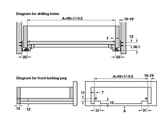 Guide di estrazione con massimo Larghezza cassetto SB = larghezza corpo luce - 42 mm + 2 x spessore parete laterale cassetto - per la massima qualità di movimento.